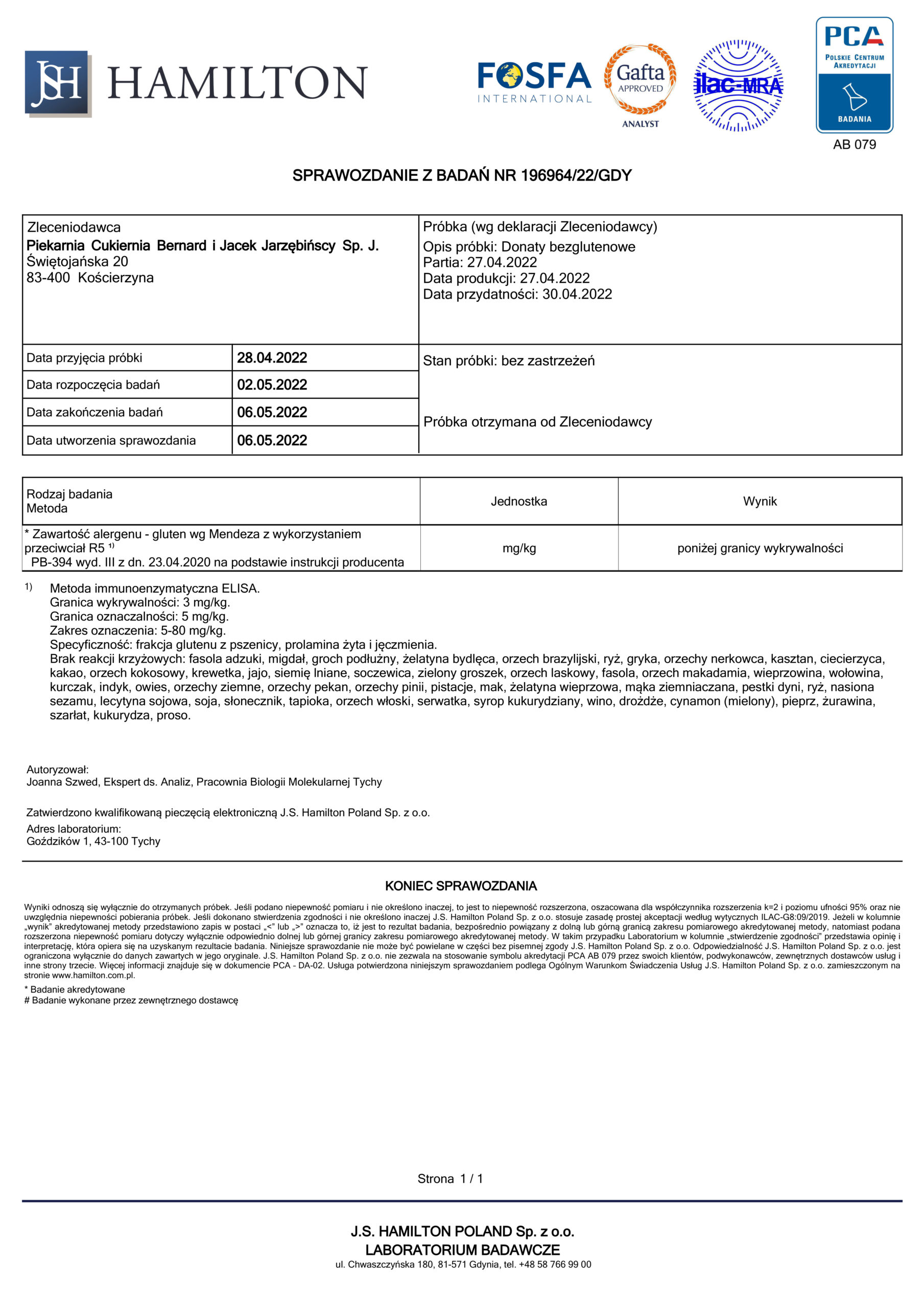 Piekarnia Cukiernia Bernard i Jacek Jarzębińscy ul. Świętojańska 20, 83-400 Kościerzyna ING Bank Śląski (nr konta PLN PL05 1050 1764 1000 0090 3085 4195)
