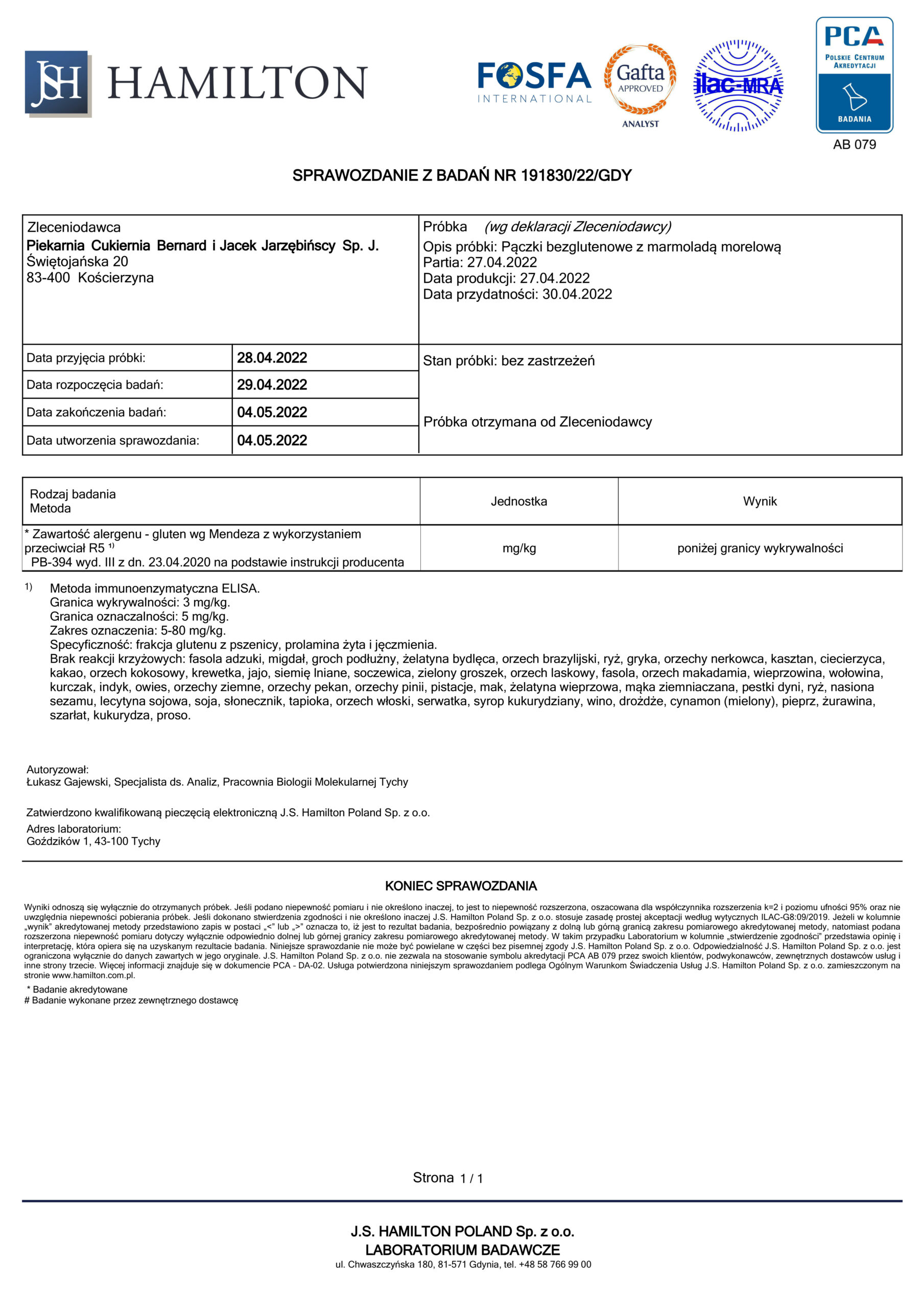 Piekarnia Cukiernia Bernard i Jacek Jarzębińscy ul. Świętojańska 20, 83-400 Kościerzyna ING Bank Śląski (nr konta PLN PL05 1050 1764 1000 0090 3085 4195)